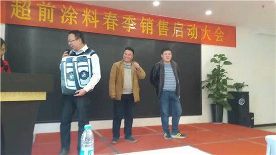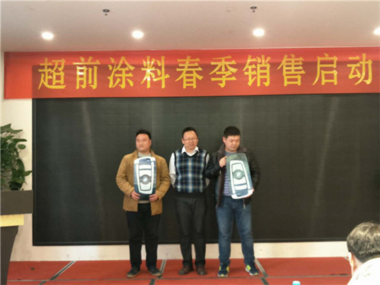 在過去的一年里,超前涂料里的每一位業(yè)務(wù)家人,就像一只只雄鷹,搏擊風(fēng)雨,翱翔蒼穹,創(chuàng)造佳績,跨越了一座座難以逾越的巔峰,在時間的長河里留下一個個美麗的剪影。在公司閻總的關(guān)心和領(lǐng)導(dǎo)下,在各部門的大力支持下,通過全體業(yè)務(wù)家人的共同努力,公司業(yè)務(wù)規(guī)模獲得了輝煌的發(fā)展。今天,在這啟動大會上閻運(yùn)鋒閻總親自給四位優(yōu)秀業(yè)務(wù)家人送出了四輛寶馬作為獎勵。